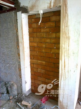 這里是新砌起來的衛(wèi)生間入口,冰箱處的樣子,瓦工葉師傅的手藝看上去不錯(cuò)的。
