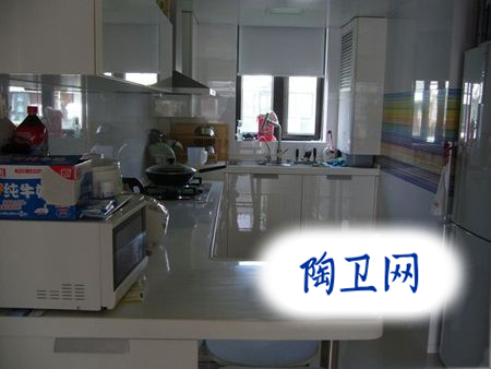 白色的櫥柜,有點(diǎn)跟白色的墻磚融合的感覺。