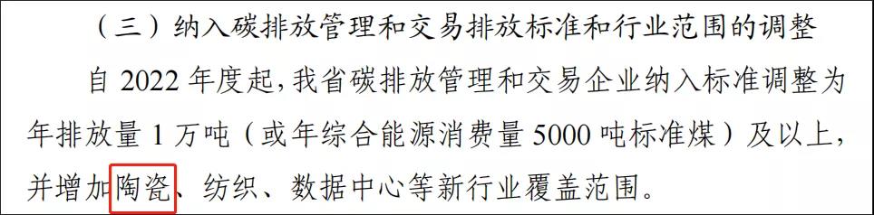 實(shí)際上,早前湖北、福建、遼寧等產(chǎn)區(qū)的陶企已經(jīng)被納入了碳配額管理范圍中。