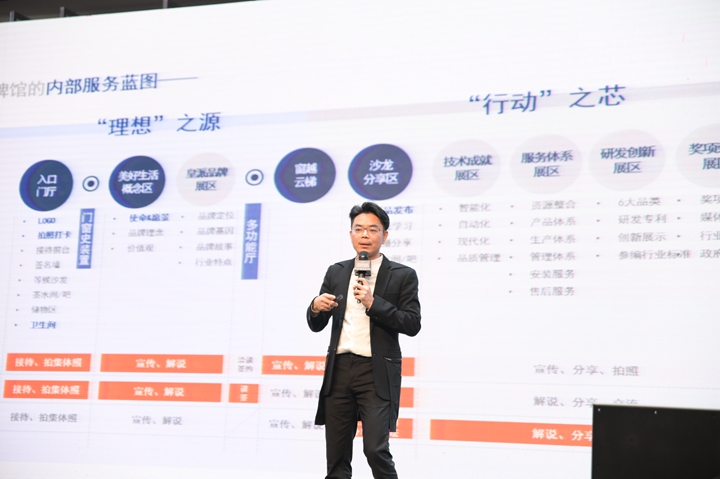 最后,覃老師向在場的品牌高管們展示了由TC Design創(chuàng)思國際負責的多個陶瓷、衛(wèi)浴品牌的展廳、展位等設(shè)計方案。通過豐富生動的案例,向品牌高管們展示了好設(shè)計是能幫助品牌實現(xiàn)業(yè)績轉(zhuǎn)化和運營可持續(xù)的。