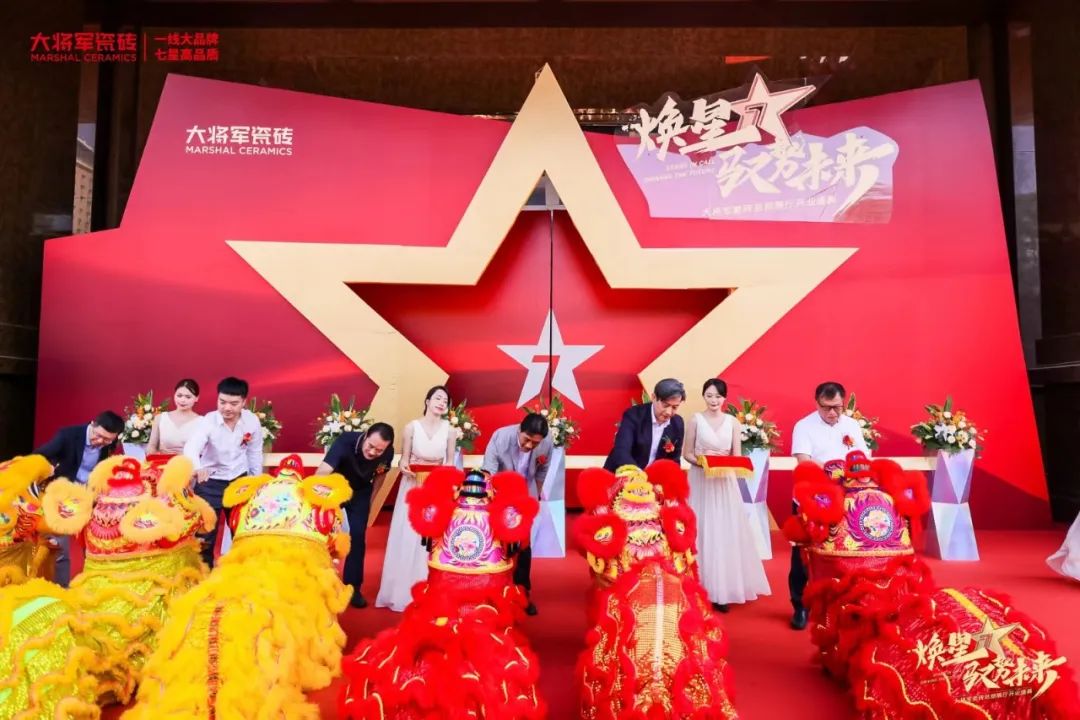 在振奮的舞獅表演后,大將軍瓷磚七星藝術(shù)館剪彩儀式正式開始。金剪裁得金路開,生意財(cái)源滾滾來。金色絲帶寓意著大將軍瓷磚鴻運(yùn)當(dāng)頭,八方來客,宏圖大展,再創(chuàng)輝煌蓬勃的發(fā)展之路。大將軍瓷磚七星藝術(shù)館終于揭開神秘面紗,總部營銷中心正式官宣,拉開了大將軍品牌發(fā)展新篇章。