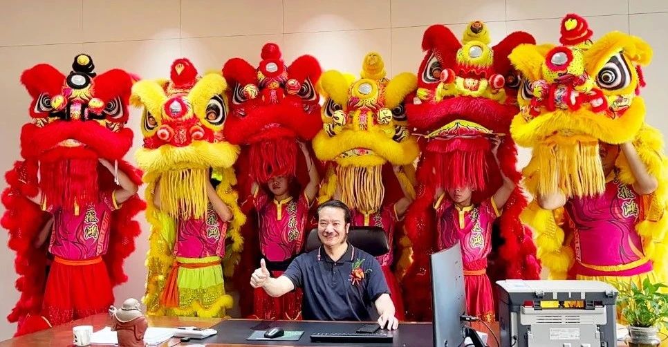 雄獅吐瑞齊助興,伴隨著歡快的音樂,各位領(lǐng)導(dǎo)嘉賓共同為象征著祥瑞的金獅點(diǎn)睛。