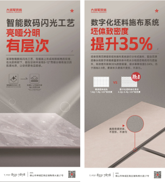 大將軍品牌作為高品質(zhì)生活方式引領(lǐng)者,通過(guò)研制差異化產(chǎn)品提升品牌附加值,成立七星巖板研究院和七星技術(shù)研究院,產(chǎn)品品質(zhì)嚴(yán)格對(duì)標(biāo)“7星標(biāo)準(zhǔn)”,具備耐污、耐磨、防潮、防滲透、高硬度、耐酸堿、耐高溫、抗斷層等多項(xiàng)性能的高品質(zhì)產(chǎn)品,為消費(fèi)者打造品質(zhì)健康家居生活。
