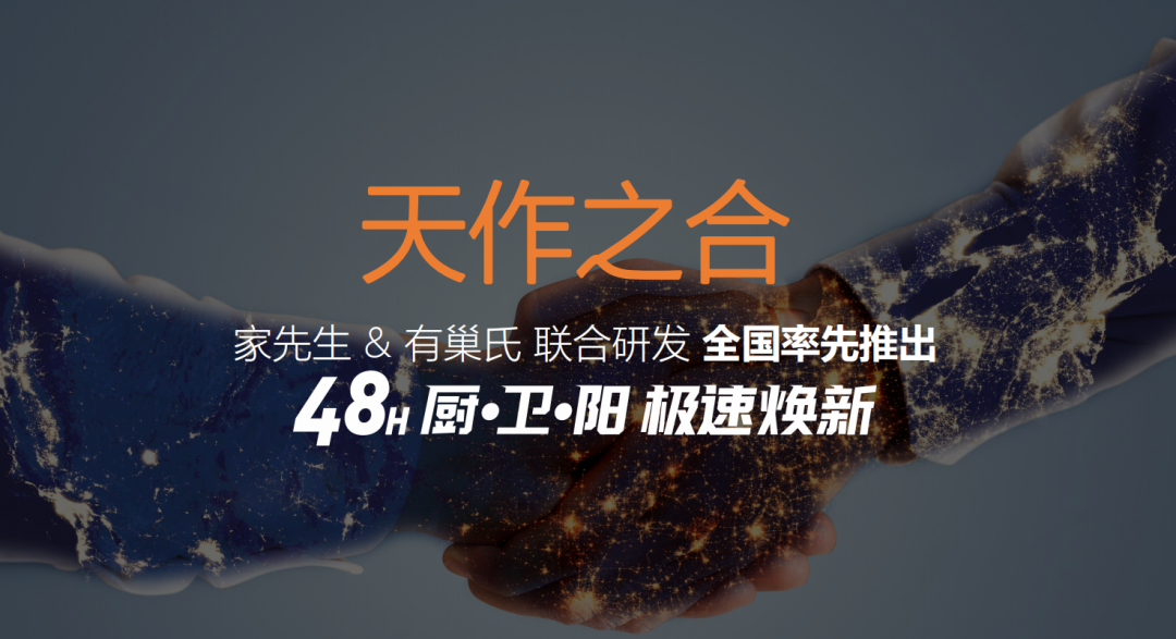 家先生 |有巢氏| 48小時(shí)廚·衛(wèi)·陽極速煥新”是中國(guó)舊房翻新領(lǐng)軍品牌-家先生和中國(guó)內(nèi)裝工業(yè)化部品部件及服務(wù)最佳提供商海鷗住工-有巢氏共同研發(fā)推出的針對(duì)廚房、衛(wèi)生間、陽臺(tái)的極速煥新整體解決方案。是國(guó)內(nèi)首個(gè)突破舊房翻新傳統(tǒng)作業(yè)方式,實(shí)現(xiàn)48小時(shí)極速煥新,開創(chuàng)舊改不再是“#老、破、小”,而是“短、平、快”乃至“高、精、奢”的模式先河。