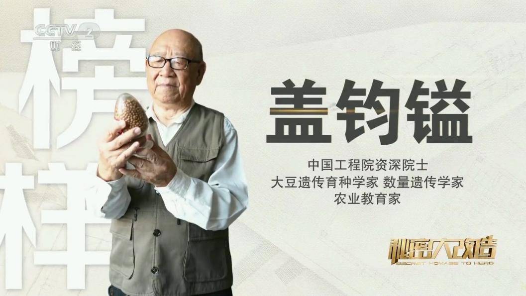 “大豆院士”蓋鈞鎰,是中國(guó)工程院的資深院士,66年投身大豆科研事業(yè),為了“中國(guó)碗里裝中國(guó)糧”,將畢生心血傾注于大豆科研事業(yè),帶領(lǐng)團(tuán)隊(duì)建成了世界第三大大豆種質(zhì)綜合性狀數(shù)據(jù)庫(kù),并育成了以“南農(nóng)”命名的50多個(gè)大豆新品種,為我國(guó)大豆增產(chǎn)作出了杰出貢獻(xiàn)。