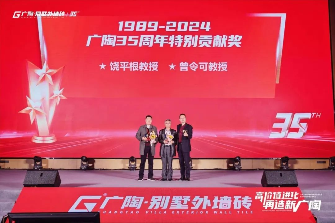 2024年3月5日,廣陶別墅外墻磚高價值進化大會暨2024品牌服務商年會在佛山高明聯(lián)塑萬怡酒店順利舉行。廣寧廣陶陶瓷有限公司董事長陳善豪先生、執(zhí)行董事兼總經(jīng)理鐘志城先生、營銷部副總經(jīng)理姚妙英女士、品牌中心總經(jīng)理溫奕輝先生、新媒體事業(yè)部總經(jīng)理馮瓊芳女士以及育商事業(yè)部團隊、施工事業(yè)部團隊和來自全國各地的服務商代表,以及特別邀請嘉賓建材行業(yè)協(xié)會秘書長孔海發(fā)先生,廣東陶瓷協(xié)會專家委員會主任饒平根教授,華南理工大學教授曾令可教授,與陶瓷資訊等行業(yè)媒體共赴盛會,商討未來,一同見證廣陶別墅外墻磚成立35周年。