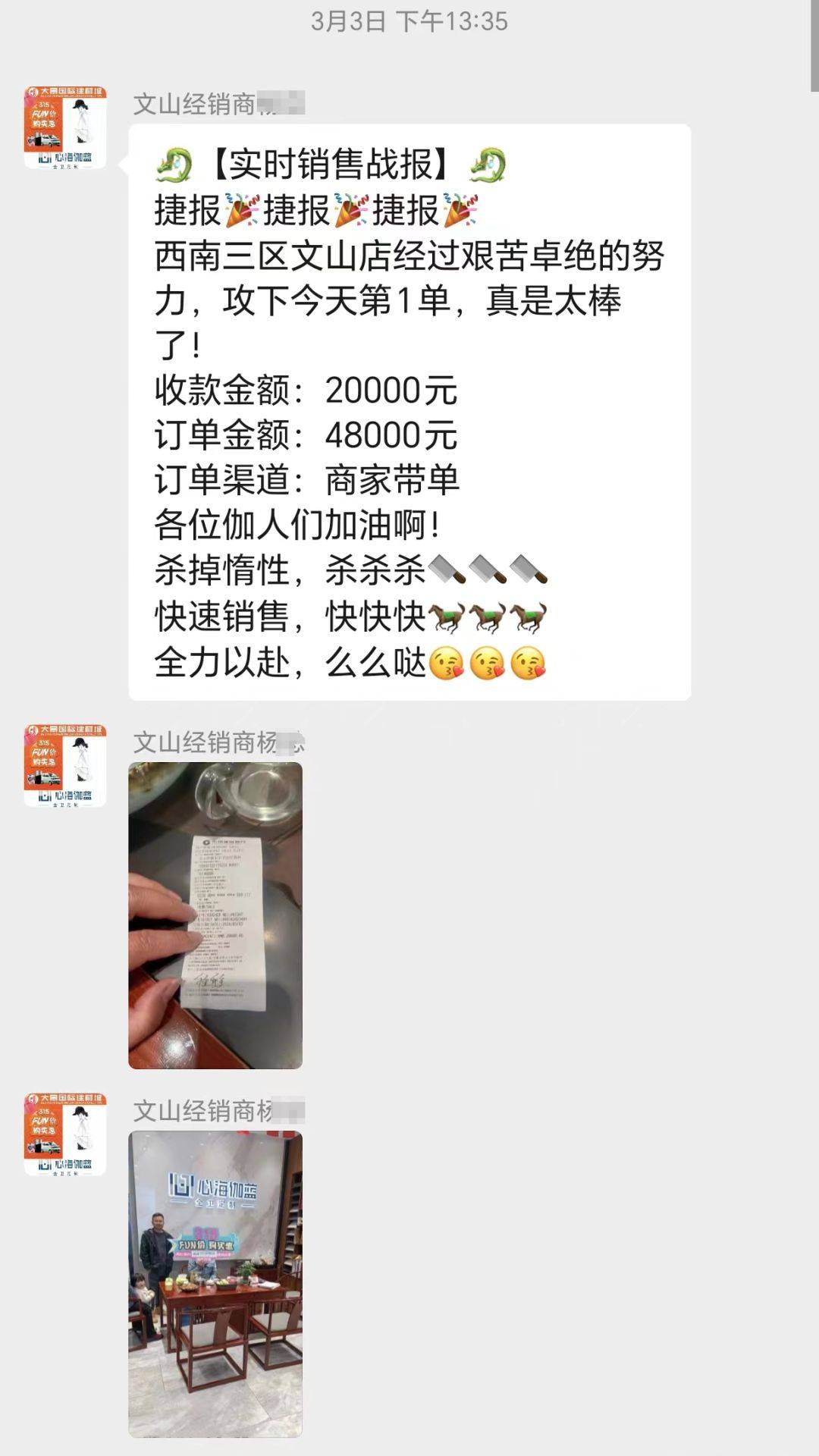 315全國(guó)聯(lián)動(dòng)促銷成功的背后,是全體伽藍(lán)人的齊心協(xié)力和不懈努力。從活動(dòng)策劃初期,我們就確立了明確的目標(biāo)和計(jì)劃。物料的精心布置、每日的晨會(huì)夕會(huì)不僅增強(qiáng)了團(tuán)隊(duì)之間的溝通和協(xié)作,更體現(xiàn)了我們對(duì)目標(biāo)的堅(jiān)定追求及對(duì)活動(dòng)執(zhí)行的把控。在共同的目標(biāo)下,終端伽藍(lán)人以滿腔的熱忱和無限的創(chuàng)意,為活動(dòng)的順利進(jìn)行提供了強(qiáng)大的支持。