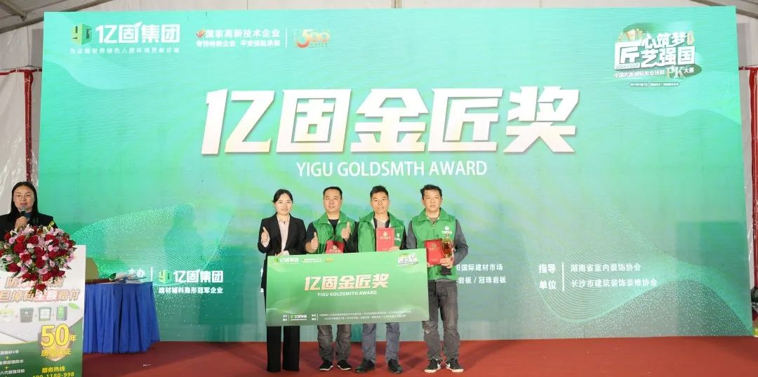 裁判組經(jīng)現(xiàn)場(chǎng)考核、綜合審議等環(huán)節(jié)后,共有6支隊(duì)伍獲匠心獎(jiǎng)、3支隊(duì)伍獲精工獎(jiǎng)、2支隊(duì)伍獲金刀獎(jiǎng)、1支冠軍隊(duì)伍獲金匠獎(jiǎng),后續(xù)12支隊(duì)伍將作為億固集團(tuán)巖板交付湖南運(yùn)營(yíng)中心重要的交付儲(chǔ)備資源,服務(wù)更廣大的項(xiàng)目客戶,為他們提供更多優(yōu)質(zhì)、便捷、省心的巖板一站式交付服務(wù)。
