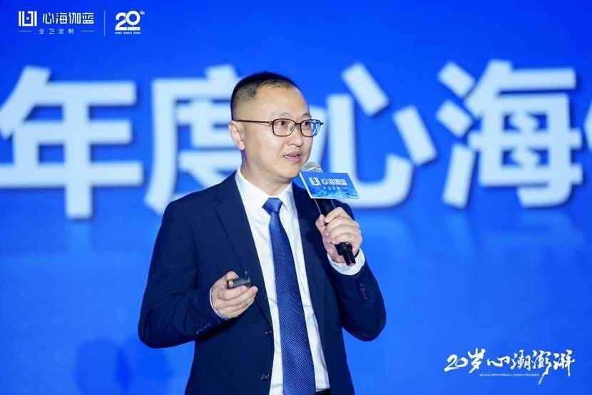 晚宴開始,張愛民董事長在閃耀燈光中登場,熱情洋溢地發(fā)表了20周年報告。張董真情流露地回顧了公司20年的發(fā)展歷程,從幾個人的從浴室柜單一品類的獨角獸到全衛(wèi)定制戰(zhàn)略領(lǐng)航,從多品牌運作到贏伽電商、凱庭淋浴房,雅頌衛(wèi)浴等七大分公司/中心集團發(fā)展,從專賣區(qū)到全國百城千家門店、至商業(yè)版圖覆蓋海外,心海伽藍始終敢為創(chuàng)新、銳意進取,從率先扛起數(shù)智化生產(chǎn)大旗開始,心海伽藍始終堅持開放分享的態(tài)度,與行業(yè)共同成長。