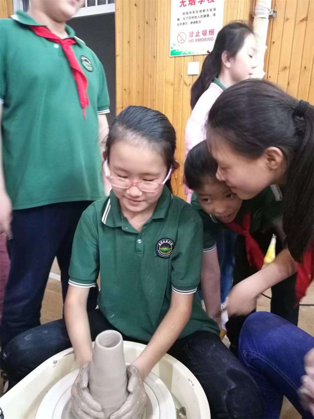 在各級領(lǐng)導(dǎo)的支持關(guān)心下,我校2015年獲河北省“陶藝教學(xué)示范基地”,學(xué)校成功承辦“千名小學(xué)生現(xiàn)場陶藝競賽”活動,有16位中國陶藝大師及教育局、省陶協(xié)、省工藝美術(shù)協(xié)會、省工藝美術(shù)學(xué)會領(lǐng)導(dǎo)岀席了活動。學(xué)生創(chuàng)作的陶藝作品,在全國、省市級比賽中獲獎與發(fā)表,學(xué)校陶藝社團(tuán)開展陶藝研學(xué)實踐、親子陶藝制作、專家講座、國際交流、送教下鄉(xiāng)等活動,陶藝社團(tuán)還組建陶瓷樂隊,傳承中華傳統(tǒng)文化。