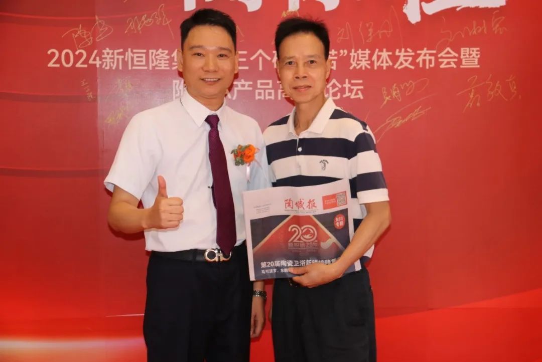 廣東新恒隆集團(tuán)總經(jīng)理羅浩彬、廣東新恒隆集團(tuán)營銷總經(jīng)理蔡旻高、廣東新恒隆集團(tuán)品牌營銷總經(jīng)理羅順機(jī)、廣東新恒隆集團(tuán)品牌營銷總經(jīng)理 羅浩鑒、廣東新恒隆集團(tuán)市場總監(jiān)曾小娟等集團(tuán)高層領(lǐng)導(dǎo)、特邀經(jīng)銷商代表和佛山市佛山標(biāo)準(zhǔn)和卓越績效管理促進(jìn)會秘書長朱悅夫、佛山市質(zhì)量計量監(jiān)督檢測中心(國家陶瓷及水暖衛(wèi)浴產(chǎn)質(zhì)量檢驗(yàn)檢測中心)部長吳清良、智造聯(lián)盟董事長金亞范、家居視界總經(jīng)理張英權(quán)等特邀重磅嘉賓出席了本次發(fā)布會,共同見證了這一具有里程碑意義的時刻。本次盛會還得到了智造聯(lián)盟、陶城報、中國陶瓷網(wǎng)、華夏陶瓷網(wǎng)、陶瓷信息、陶瓷資訊、佛山日報、設(shè)計好物、華人設(shè)計師、中國陶瓷家居網(wǎng)、陶瓷深度、陶瓷世界、華南家居網(wǎng)等一眾主流媒體大力支持和持續(xù)爭相報道,活動熱度不減。