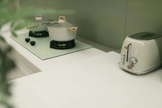 朦朧的陽光,生機盎然的綠植,法薩臺面石以奶油色為基調(diào),一抹綠色抵達視覺深處,治愈又自得,充滿趣味性的變化帶來彌新的感觸,穿著家居服、挽著發(fā)絲的在廚房忙碌的優(yōu)雅女士,仿佛空間自帶浪漫的法式電影感濾鏡。