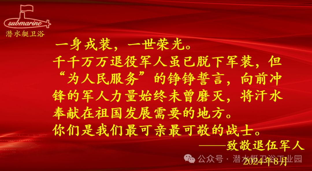 昔日,他們是保衛(wèi)家國的人民子弟兵。今朝,脫下軍裝的他們,成為了愛崗敬業(yè)的潛水艇衛(wèi)浴工作者。崗位上,他們始終保持著軍隊培養(yǎng)出來的血性、品德和素質(zhì)。他們用堅韌的意志、拼搏的精神詮釋著,退伍不褪色、退役不退志!