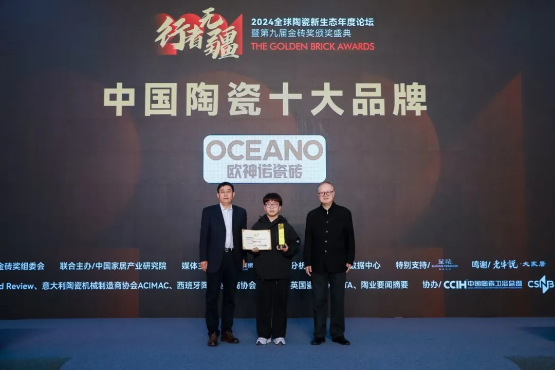 會(huì)上,還為進(jìn)入“2024全球建筑衛(wèi)生陶瓷品牌TOP100”榜單(全名單另發(fā))的三個(gè)品牌亞細(xì)亞瓷磚、陶元帥瓷磚、KIMS巖板代表頒了獎(jiǎng)。