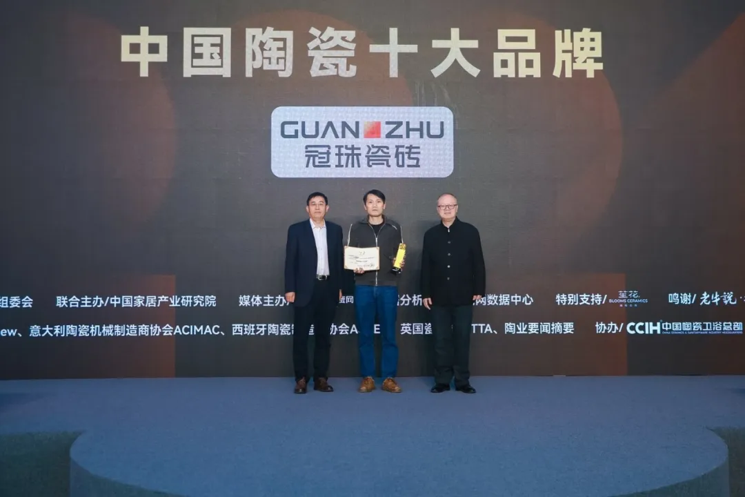 接著,主辦方還頒出了“中國(guó)市場(chǎng)高端瓷磚十大品牌”、“中國(guó)市場(chǎng)高端巖板十大品牌”以及“中國(guó)陶瓷全球化企業(yè)五強(qiáng)”三大獎(jiǎng)名單。分別由王河與徐慶良、徐慶良、劉小明(老牛)頒獎(jiǎng)。