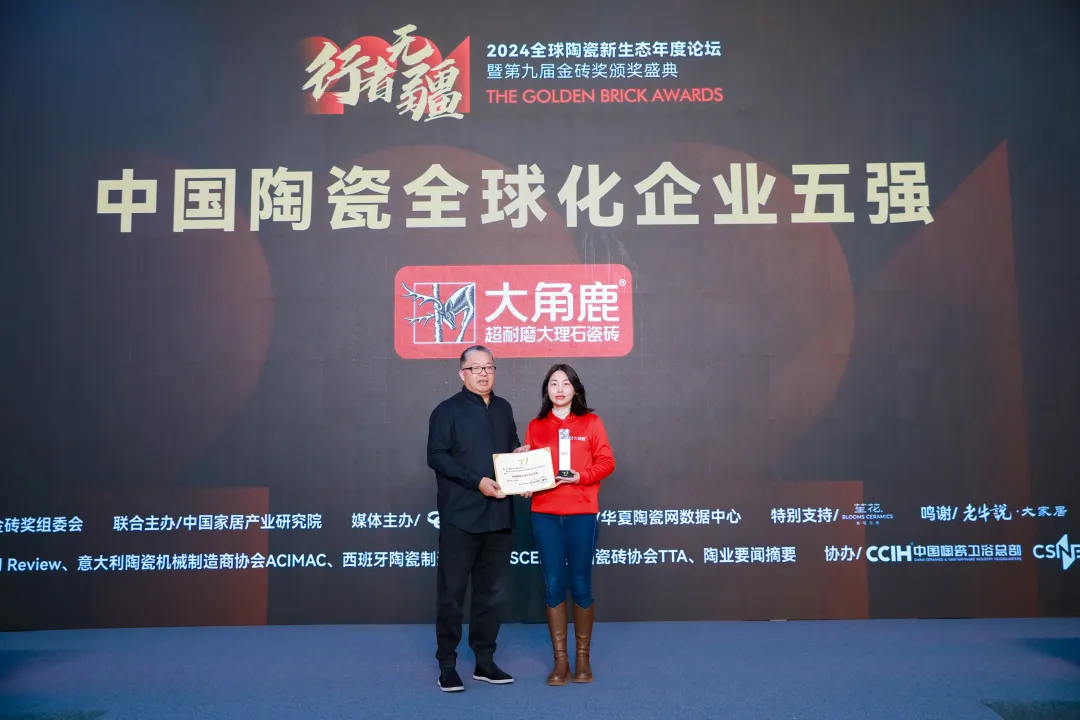 榮獲“中國(guó)陶瓷全球化企業(yè)五強(qiáng)”的是:特福國(guó)際、大角鹿瓷磚、馬可波羅控股、旺康控股集團(tuán)、時(shí)代陶瓷集團(tuán)。
