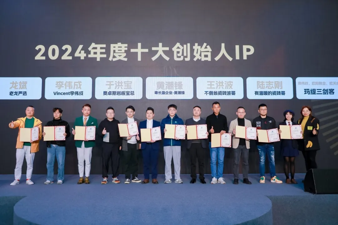 值得注意的是,為推動(dòng)陶瓷行業(yè)創(chuàng)始人IP打造,今年金磚獎(jiǎng)榜單上,還增加了“2024年度十大創(chuàng)始人IP大獎(jiǎng)”,由陶瓷衛(wèi)浴行業(yè)兩位新媒體IP人物胡俊和李天燕頒獎(jiǎng)。
