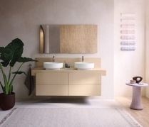該系列的設(shè)計核心與靈魂色調(diào)——啞光陶土色,以傳統(tǒng)工藝為靈感,賦予陶瓷產(chǎn)品質(zhì)樸自然而溫暖優(yōu)雅的質(zhì)感,使其更具有手工般的真實觸感。Urquiola表示:“我們的目標(biāo)是利用陶土這種材料,創(chuàng)造出一種讓衛(wèi)浴用品更有層次的畫布。這是有意偏離純白或純黑極簡美學(xué)的嘗試。”這也構(gòu)成了浴室家具的配色基礎(chǔ),大地色系的陶土色調(diào)以及以自然為靈感的色彩搭配,其中融入了白色、土棕色和啞光炭黑色的微妙變化,預(yù)示著浴室色彩運用的全新開放性。