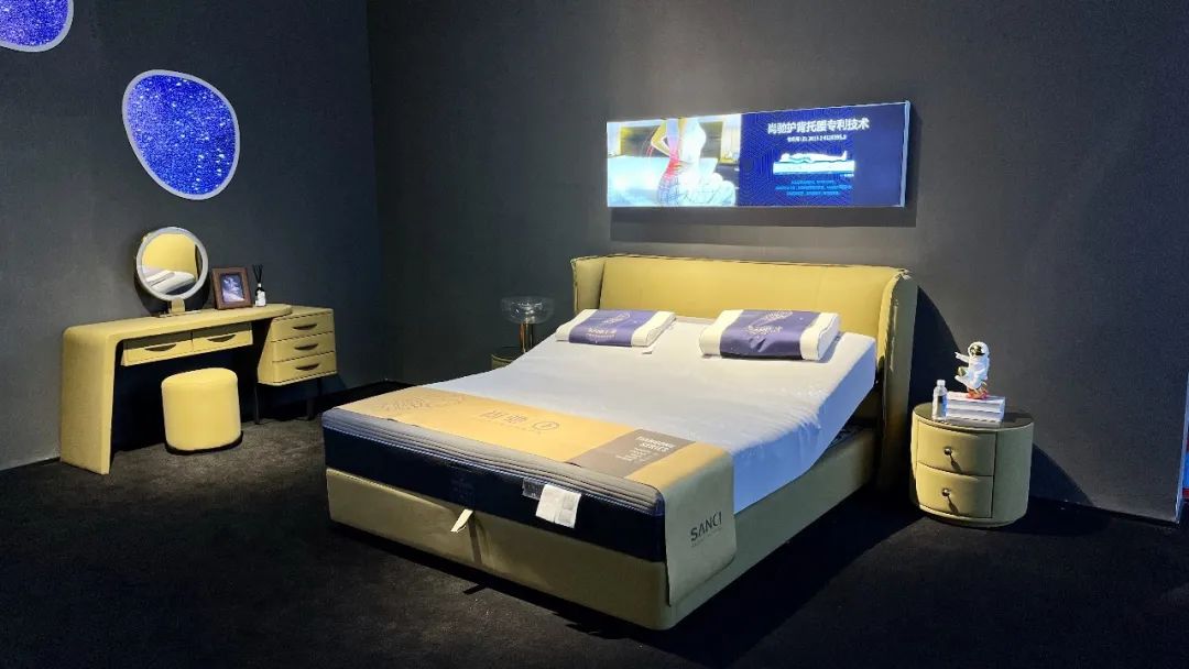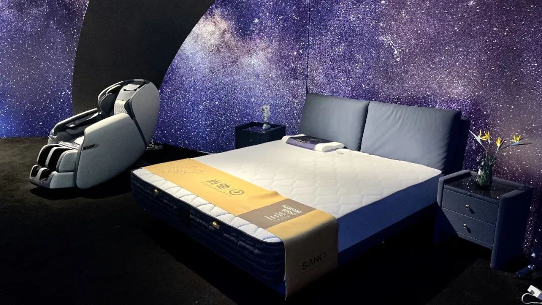 本次展會,尚馳還帶來了2023年最新產(chǎn)品——“天宮系列”,天宮系列可以通過設(shè)置,呈現(xiàn)出太空漂浮的“失重感”,讓睡眠體驗更輕盈、無壓力。