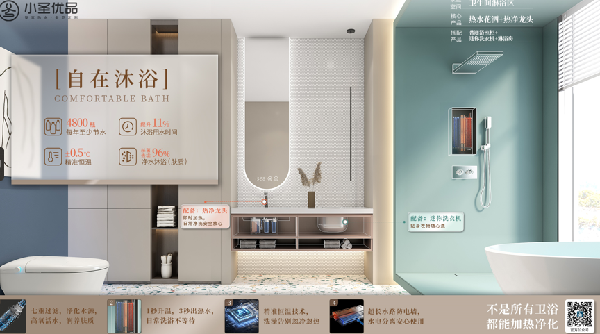 正是在這一背景下,小圣優(yōu)品衛(wèi)浴聚焦年輕消費(fèi)市場(chǎng),以高顏值、科技智能、年輕化定制、舒適健康、人文關(guān)懷的品牌形象橫空出世。劉祥透露,經(jīng)過(guò)疫情三年,年輕消費(fèi)者更加注重健康用水。劉祥表示,小圣優(yōu)品將家庭用水空間劃分為廚房、衛(wèi)生間、陽(yáng)臺(tái)三大空間,廚房洗切、日常盥洗、自在沐浴、舒適如廁、陽(yáng)臺(tái)洗護(hù)五大場(chǎng)景。劉祥指出,當(dāng)前大部分家庭的衛(wèi)生間、廚房、陽(yáng)臺(tái)并沒(méi)有熱水系統(tǒng),嬰兒、女士等衣服清洗并不便捷,小圣優(yōu)品衛(wèi)浴針對(duì)各個(gè)空間、場(chǎng)景用水“痛點(diǎn)”提供健康、智能化的歐洲末端制熱系統(tǒng)解決方案,從水質(zhì)、品效、節(jié)水、接電等方面出發(fā),幫助家庭用水的三大空間五大場(chǎng)景24小時(shí)無(wú)限量恒溫?zé)崴?,真正?shí)現(xiàn)整家熱水,全衛(wèi)定制。