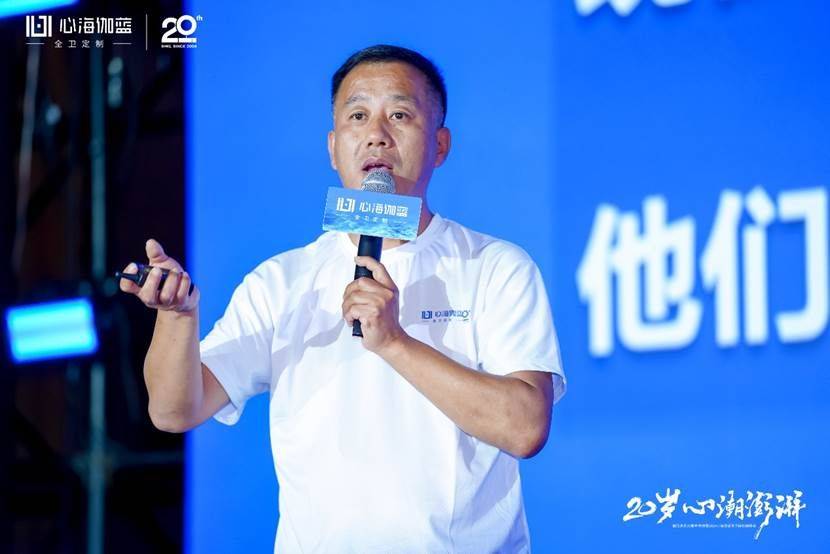 晚宴開始,張愛民董事長在閃耀燈光中登場,熱情洋溢地發(fā)表了20周年報告。張董真情流露地回顧了公司20年的發(fā)展歷程,從幾個人的從浴室柜單一品類的獨角獸到全衛(wèi)定制戰(zhàn)略領(lǐng)航,從多品牌運作到贏伽電商、凱庭淋浴房,雅頌衛(wèi)浴等七大分公司/中心集團發(fā)展,從專賣區(qū)到全國百城千家門店、至商業(yè)版圖覆蓋海外,心海伽藍始終敢為創(chuàng)新、銳意進取,從率先扛起數(shù)智化生產(chǎn)大旗開始,心海伽藍始終堅持開放分享的態(tài)度,與行業(yè)共同成長。