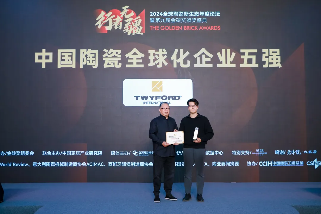 榮獲“中國(guó)陶瓷全球化企業(yè)五強(qiáng)”的是:特福國(guó)際、大角鹿瓷磚、馬可波羅控股、旺康控股集團(tuán)、時(shí)代陶瓷集團(tuán)。