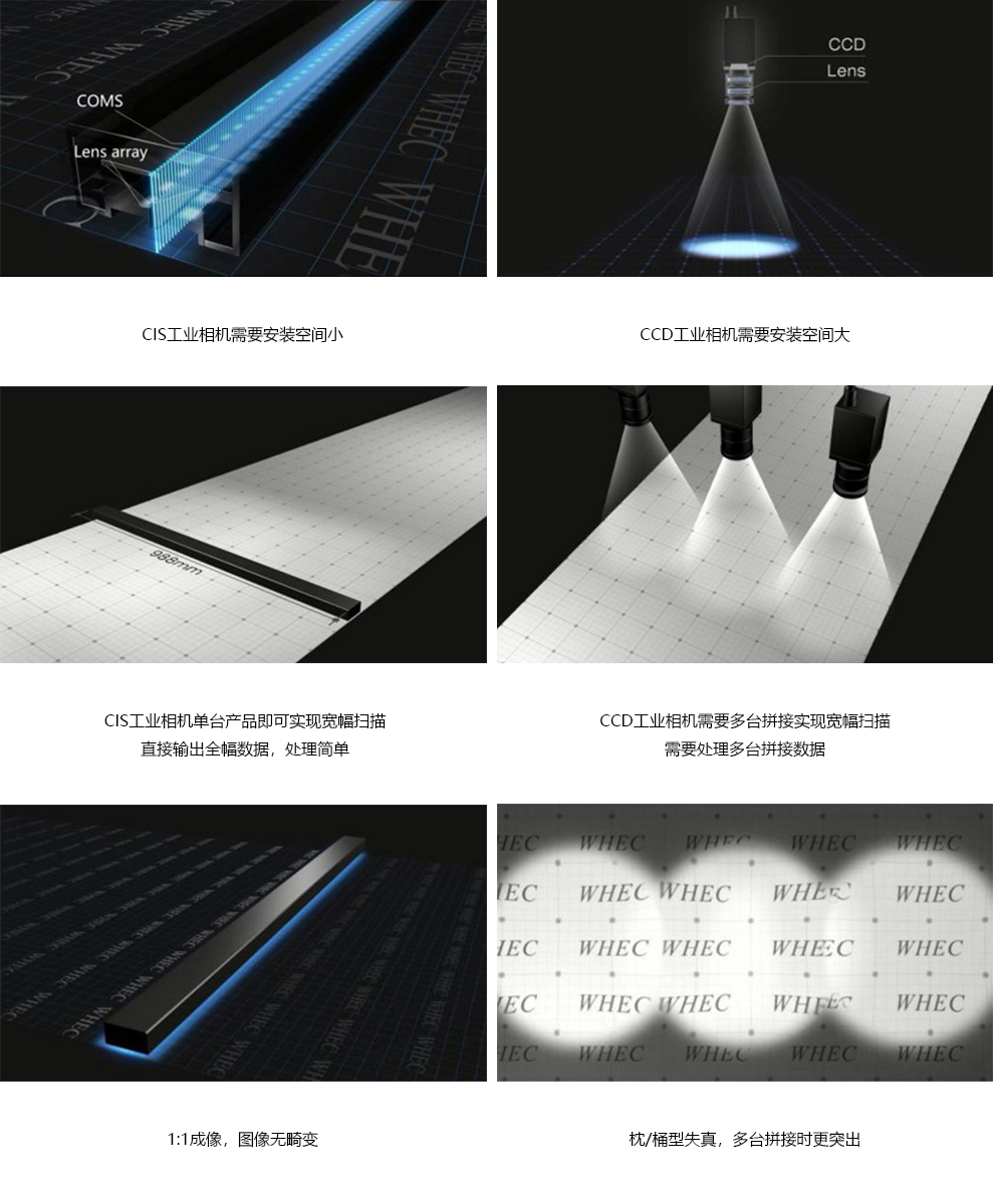 · CIS工業(yè)相機(jī)的占用空間小,可貼近待檢測(cè)物體進(jìn)行單面及雙面的在線同步檢測(cè)。