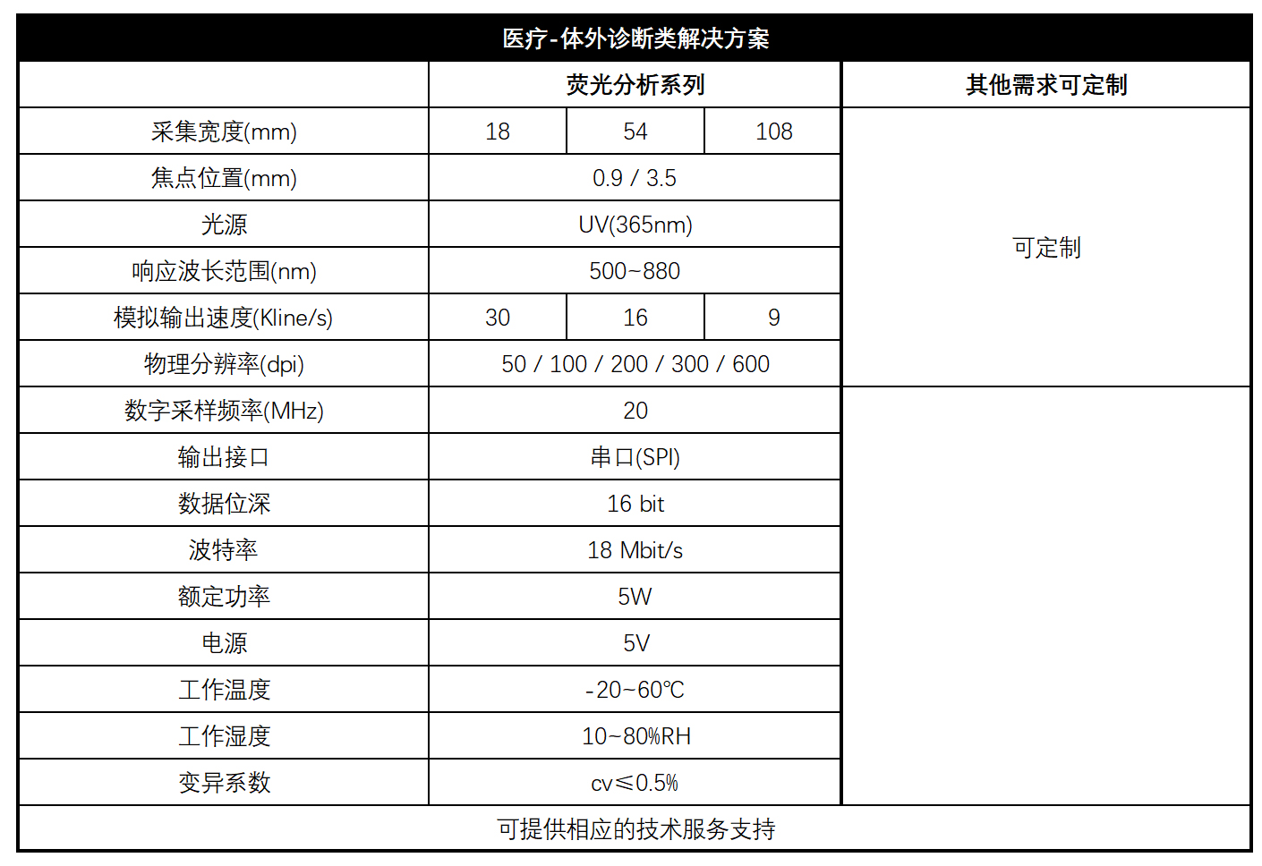 · 采用高性能線陣CMOS芯片 · 體積小 · 高速讀?。?0K line/s · 多種精度可選 · 16位串口通訊板(SPI) · 數(shù)字采樣時鐘20MHz